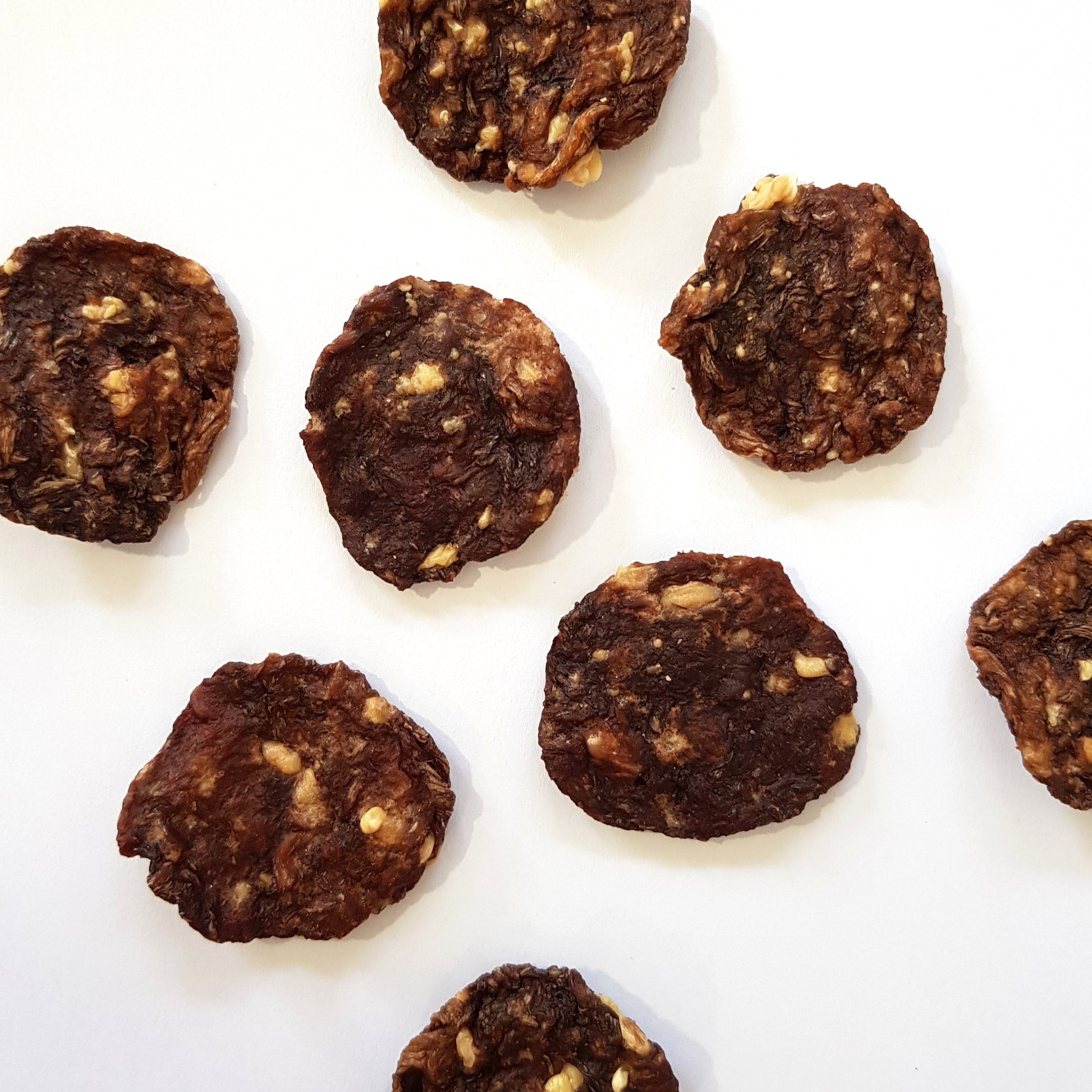 Made with lean, grass-fed Australian beef brisket that's freshly ground in our kitchen, organic cheddar is then added to the mix to churn out these delectable, irresistible, crunchy coins- each hand rolled and pressed!