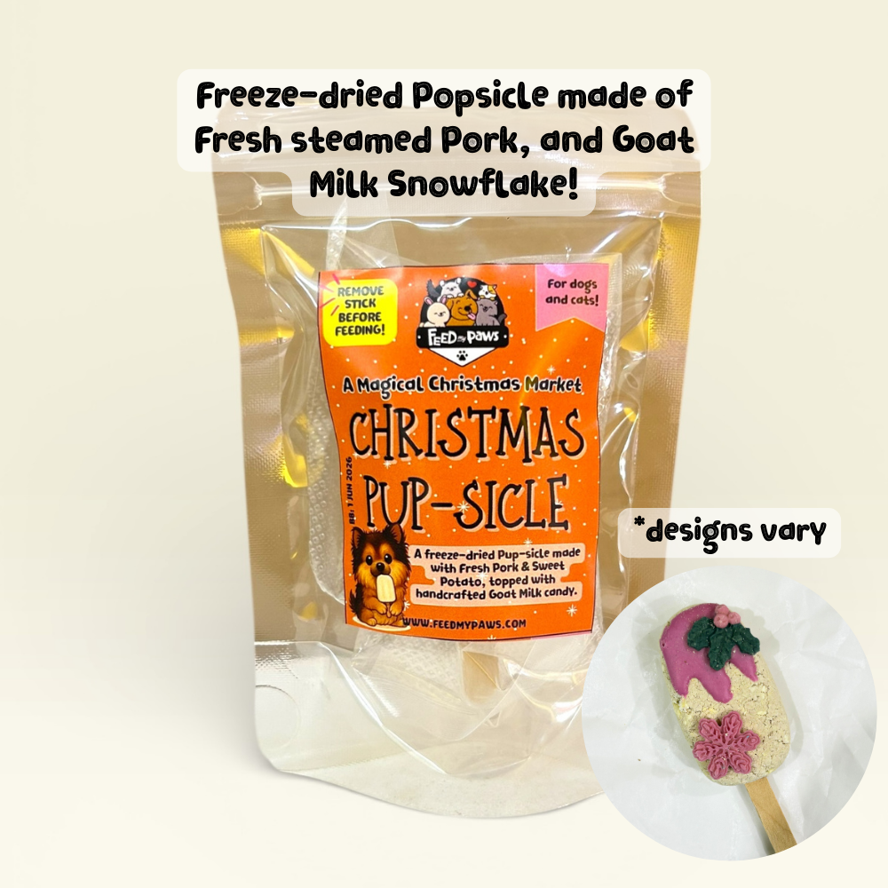 Freeze-dried Popsicle made of Fresh steamed Pork, and Goat Milk Snowflake! For Dogs and Cats. 1 Pup-sicle per pack.