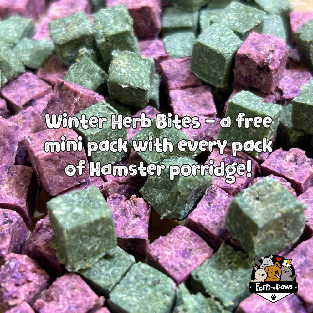 Each pack also includes a mini bag of Winter Herb Bites —bite-sized treats made with an organic oat, coconut, flower and herb base.